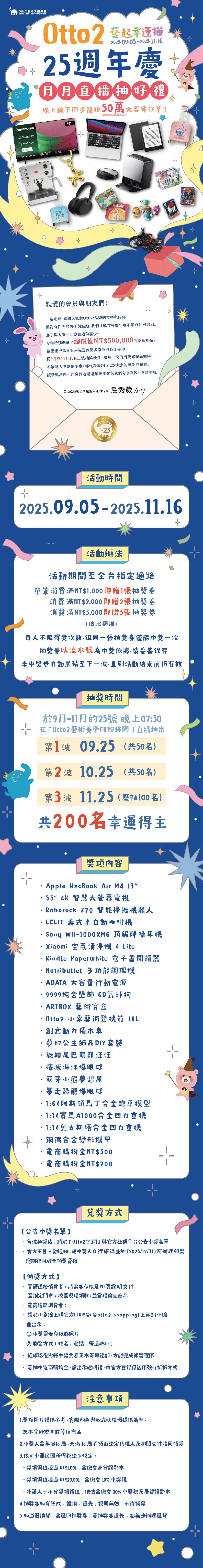 【藝起幸運抽】Otto2 25週年慶 月月直播抽好禮ღ