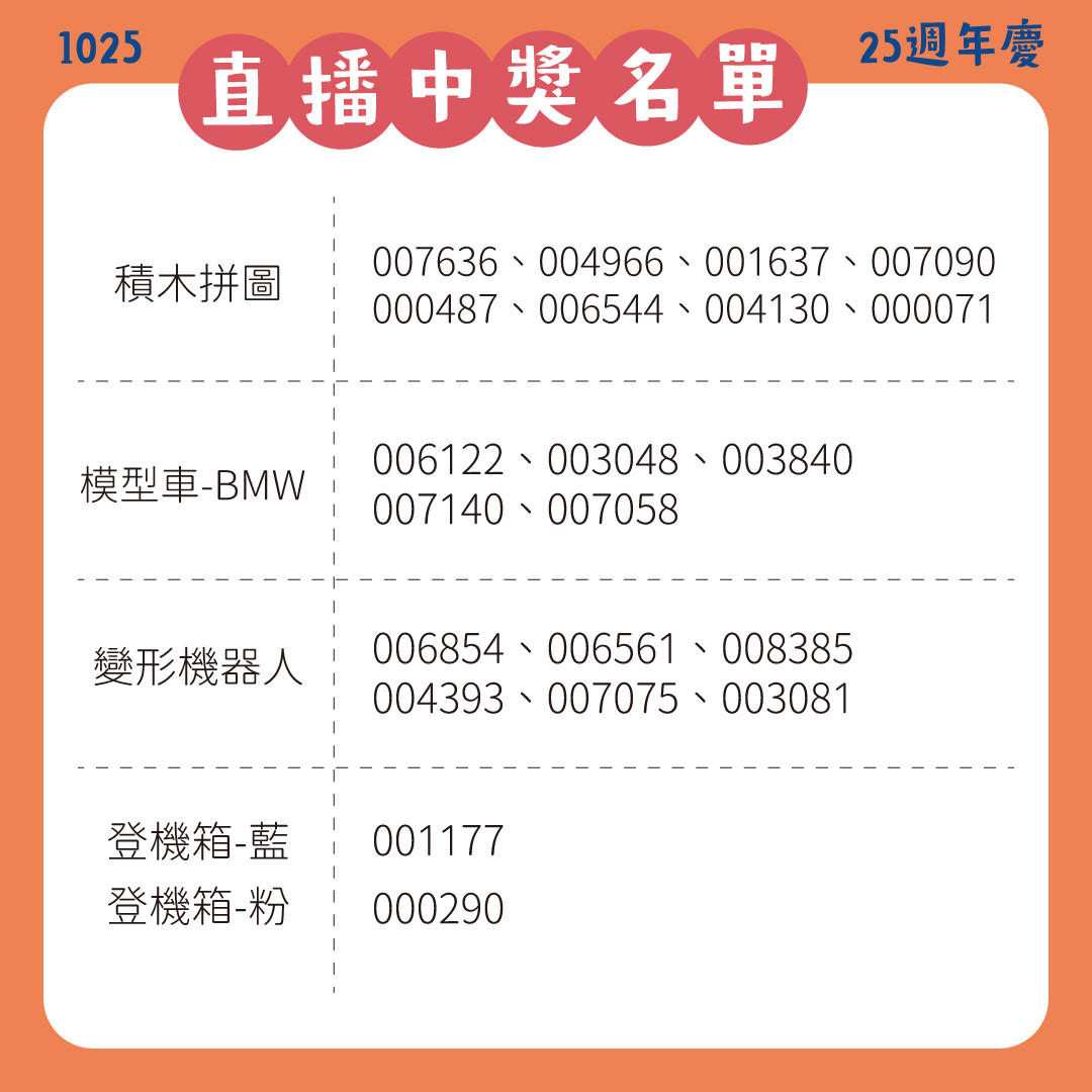 【藝起幸運抽】Otto2 25週年慶 月月直播抽好禮ღ _ 中獎公告