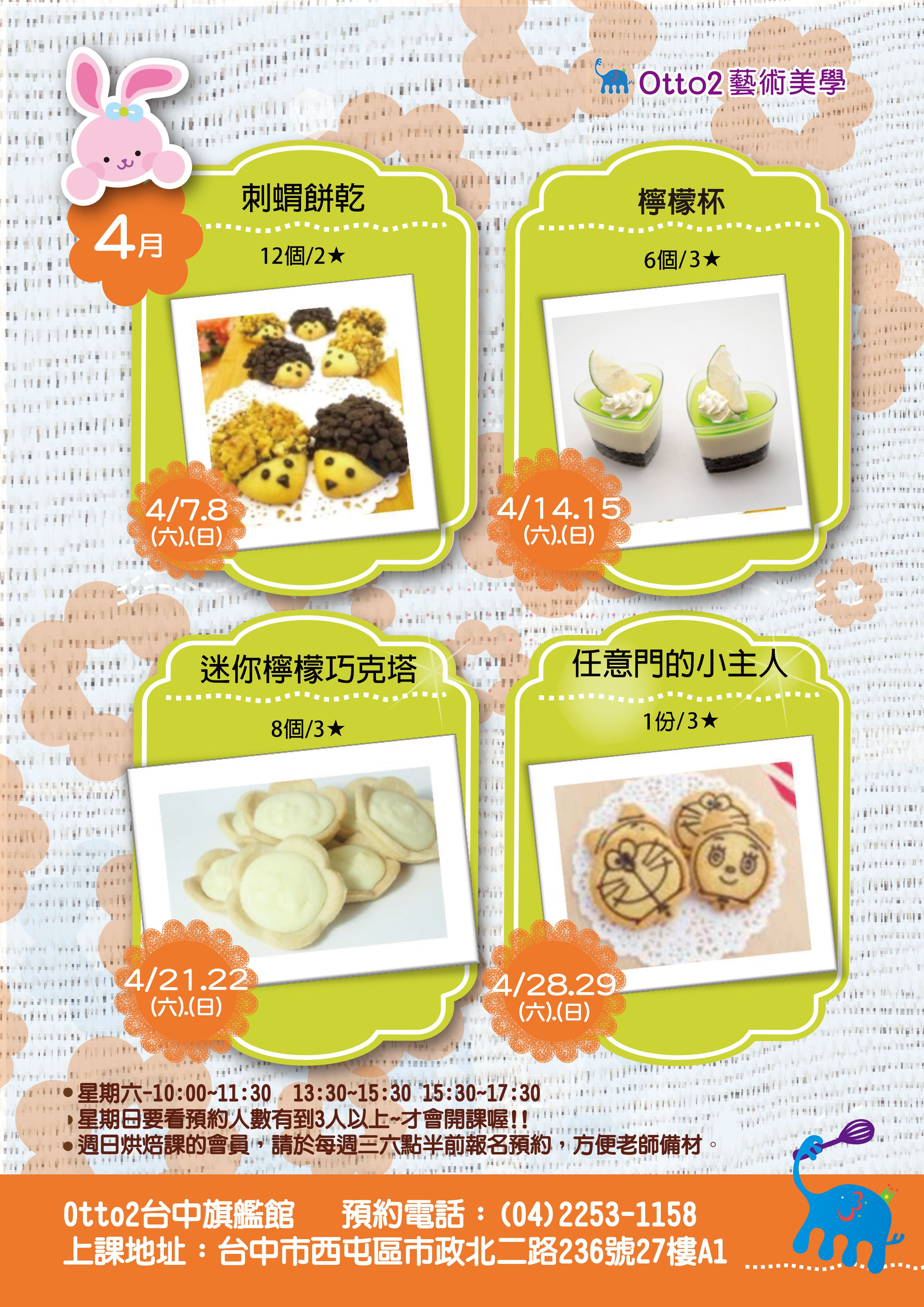 首頁 最新消息 最新消息 Otto2藝術美學【台中旗艦館】-烘焙課程2018 04月 最新消息 2018.03.29 Otto2藝術美學【台中旗艦館】-烘焙課程2018 04月 Otto2藝術美學【台中旗艦館】-烘焙課程2018 04月|電子報連結點| |回首頁| 回上一頁