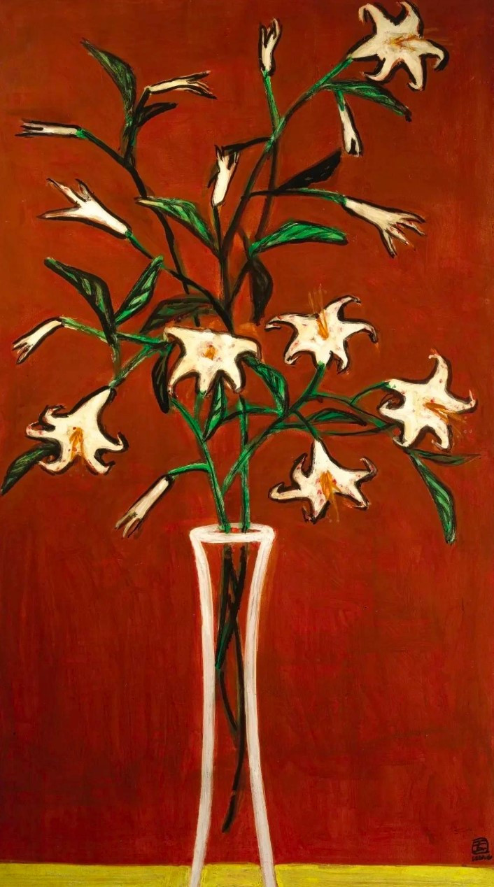 唯一一幅以絢爛紅色為背景的常玉百合瓶花傑作 -《紅色背景的百合花》,估價HK$1億 - 1.5億